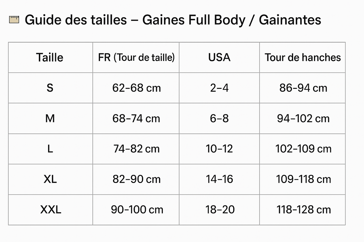 - 1 × Gaine Full Body Gainante (couleur et taille choisies)