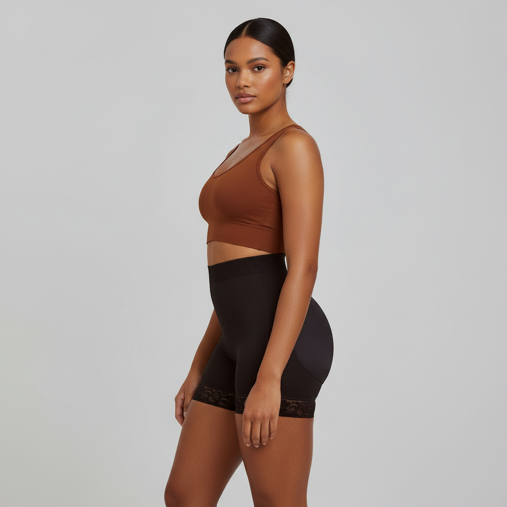 Ce short gainant sculpte la silhouette, remonte les fesses sans rembourrage, affine la taille et lisse les imperfections pour un rendu invisible sous les vêtements.
